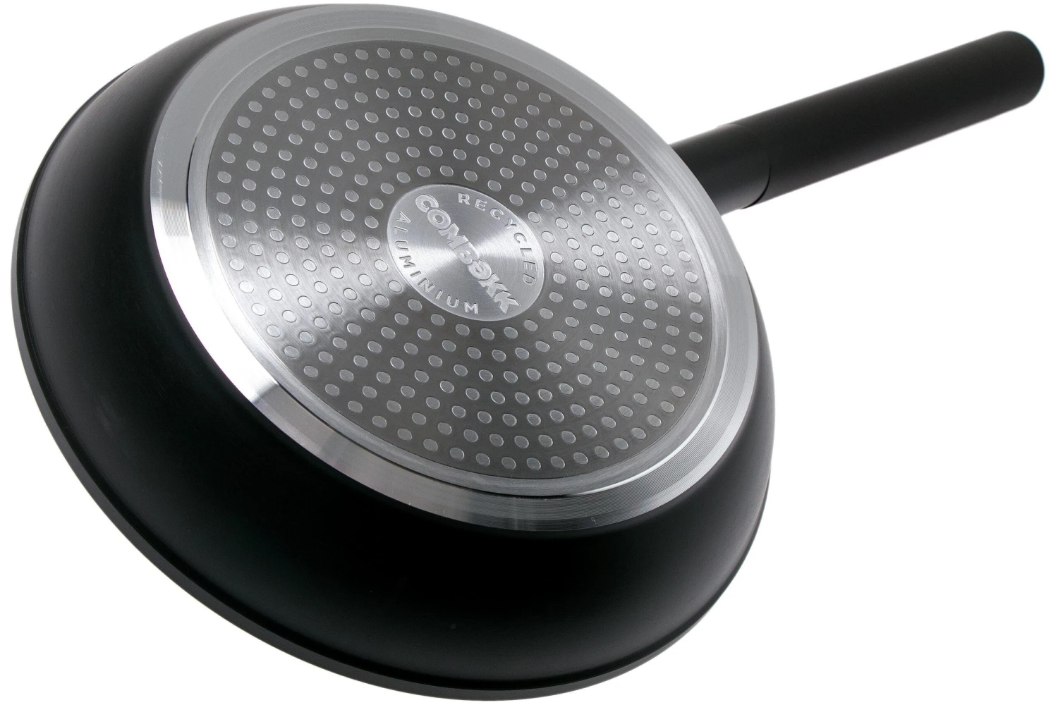 The Combekk Alu-X frying pan is a remarkable pan produced in the Netherlands. It is namely the first frying pan that is made from recycled aluminium with a ceramic non-stick coating. The striking design of the frying pan is also called the ‘Lyonnaise’ shape: the edge is higher than with the ‘regular’ frying pans and it is curved. As such sautéing and mixing the ingredients will be a lot easier. It is the perfect frying pan for one-pot meals. The thick round handle (made from 100% recycled nylon) feels great in hand and won’t heat up. Because it is long, your hand won’t get anywhere near the heat source. This frying pan is enhanced with a 24 cm diameter base (measured from the top). That is why, in general, it is great when preparing dishes for two people.
