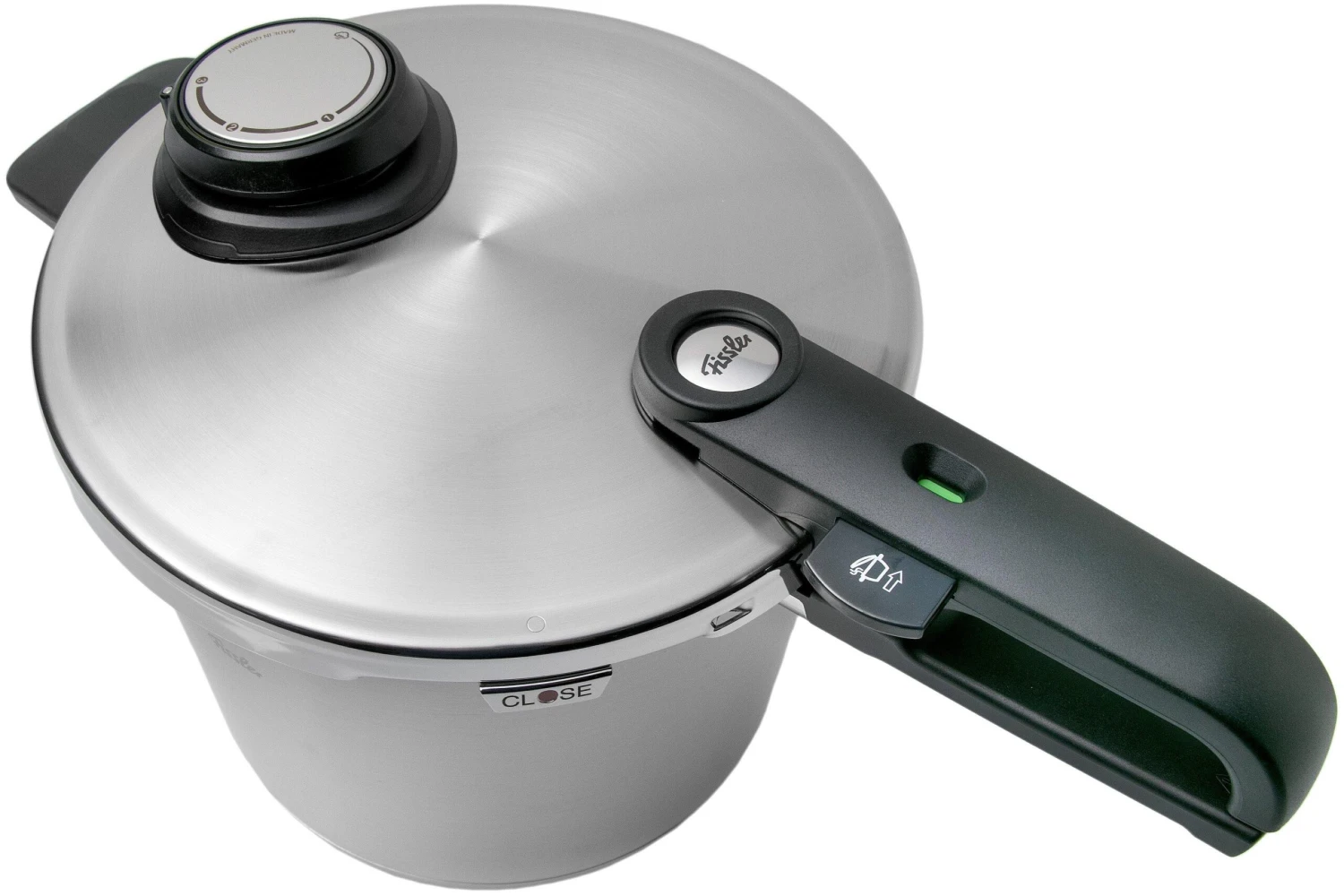 This Fissler Vitavit Premium 22 cm pressure cooker has a diameter of 22 cm. The content of the pan is 6 litres. It comes with a steam insert.