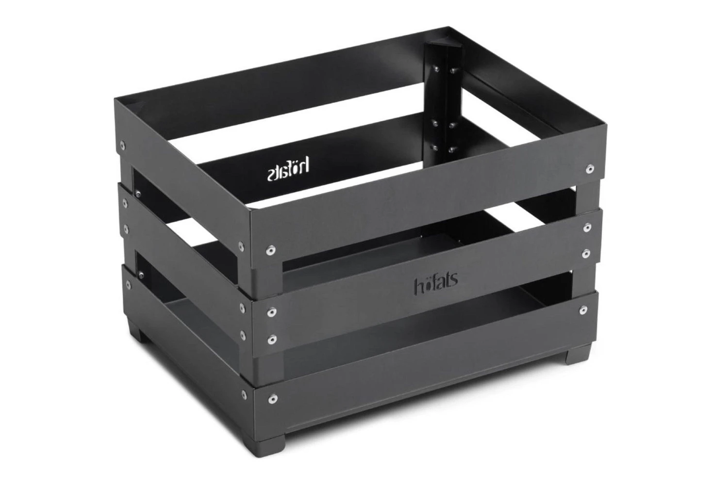 The Höfats Crate is a stylish, crate-shaped fire pit. But not only that, it can also be used as furniture, a barbecue, or a storage crate. It is made from sturdy Corten steel. This is a type of steel with a special alloy, and usually has a brownish rust colour. The thick oxide layer protects the deeper material from oxygen. This ensures that the steel rusts less quickly. Do, however, always store the crate in a dry place.