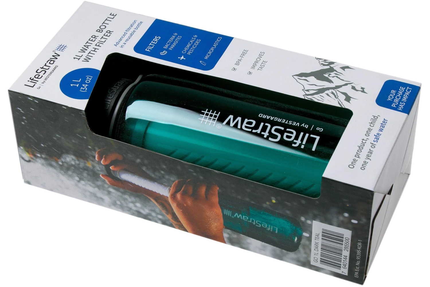 The LifeStraw Go 2-stage water bottle with filter is a very practical bottle. With a carabiner you can easily hang the bottle from your gear or belt to make sure you can always keep it close. The amazing aspect of this bottle is how simple it is. You will the bottle with polluted water and simply drink from the mouth piece. The dirt stays behind in the filter and you will only drink clean water.