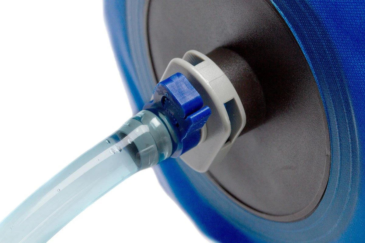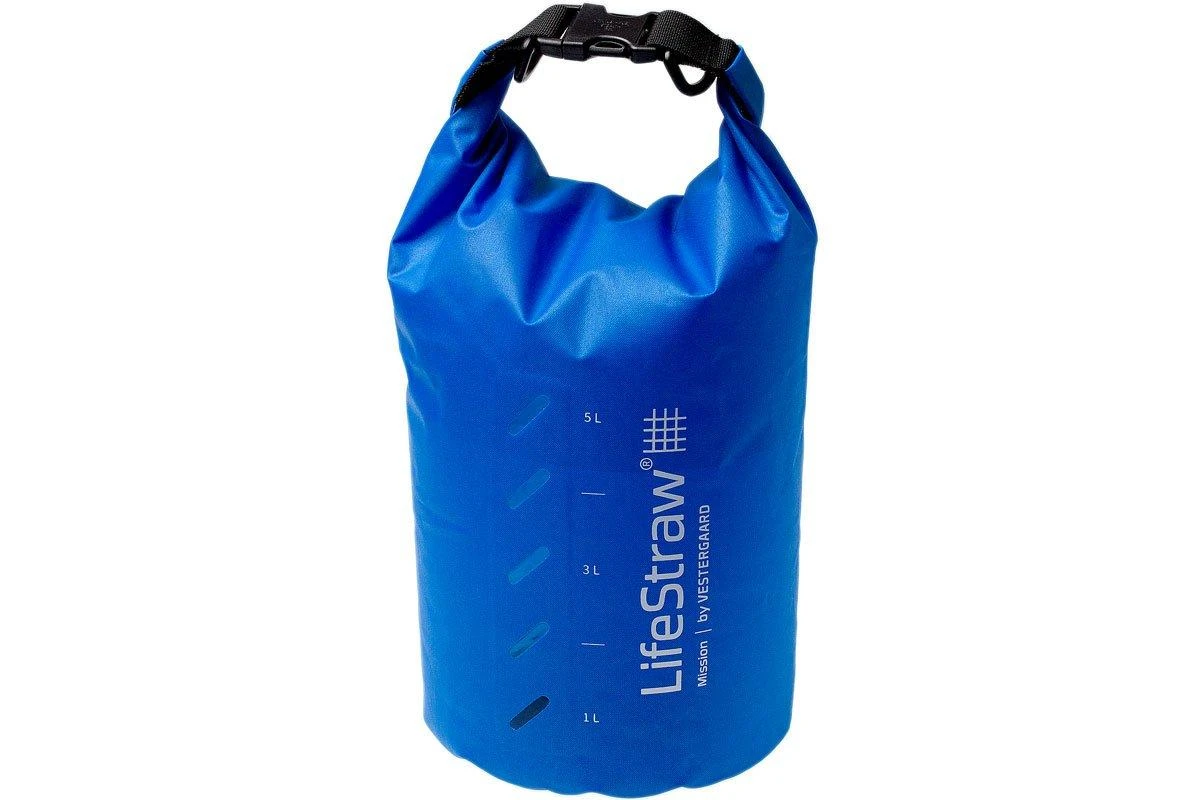 The LifeStraw Mission works with gravity. You hang up the water bag and let gravity push the water through the filter. The very fine filter filters almost all pollution out of the water.
