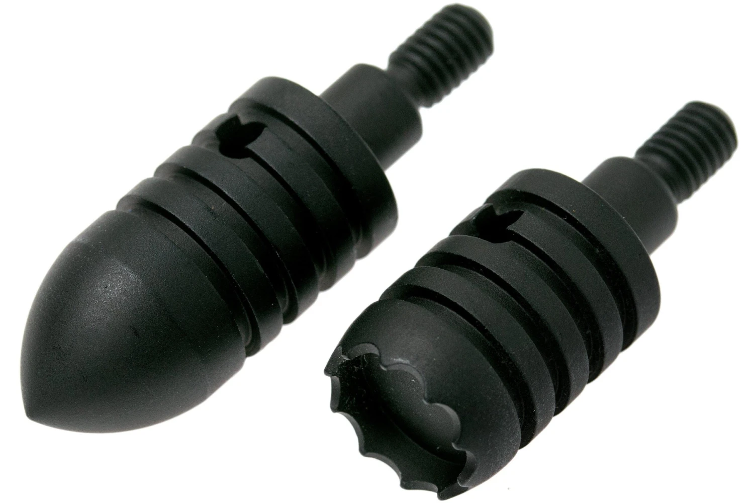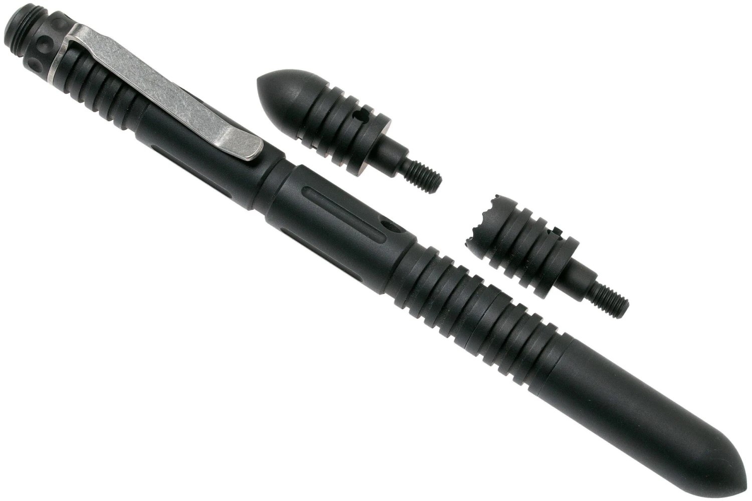 The Rick Hinderer Extreme Duty Modular Kubotan Pen Deluxe Set is a large tactical pen, designed by knife maker Rick Hinderer. With a total length of 15.6 cm and a diameter of 12.3 mm this is quite a big boy. Hinderer selected a Fisher Space pen refill size U4F as the refill. So a little smaller than the normal refill. It is necessary for the modular character of this Modular Kubotan. You can namely also only use it as a Kubotan, without the pen part. You also receive two different additional caps for the other end. As such you can configure it the way you like. To change it you can use the included pins to easily loosen and secure them. You also receive an Allen key to change the refill.