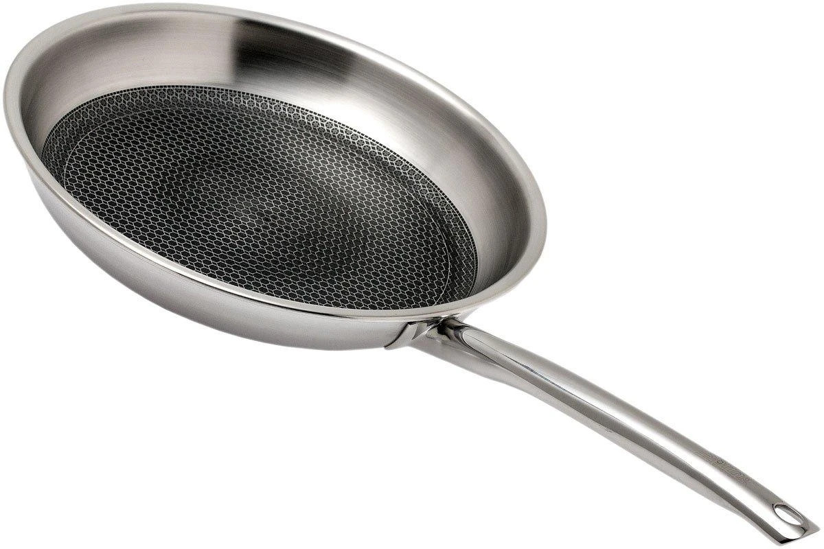 With the 28 cm Spring Vulcano Cut Resist frying pan, burning is a thing of the past! The PFOA-free non-stick coating makes sure of this. The layer has the additional protection of the stainless steel grid placed on top. All the pans in this collection are suitable for all heat sources, including induction. Only heat the pan to a maximum of 250 degrees to prevent overheating. Higher temperatures may affect the non-stick coating. Spring offers a 5-year warranty on the non-stick coating and a 25-year warranty on the other parts.