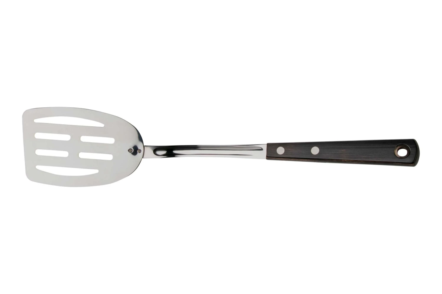 The Tramontina Landhaus spatula is a large spatula to turn over ingredients on a hot surface. Thanks to the long handle you will stay at a safe distance from the heat and because of the grooves you won’t make a mess.